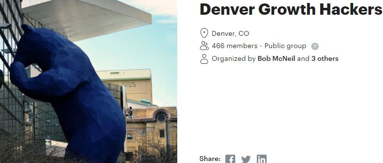 Denver Growth Hackers: https://www.meetup.com/meetup-group-BmqKyGRN/events/282810174/